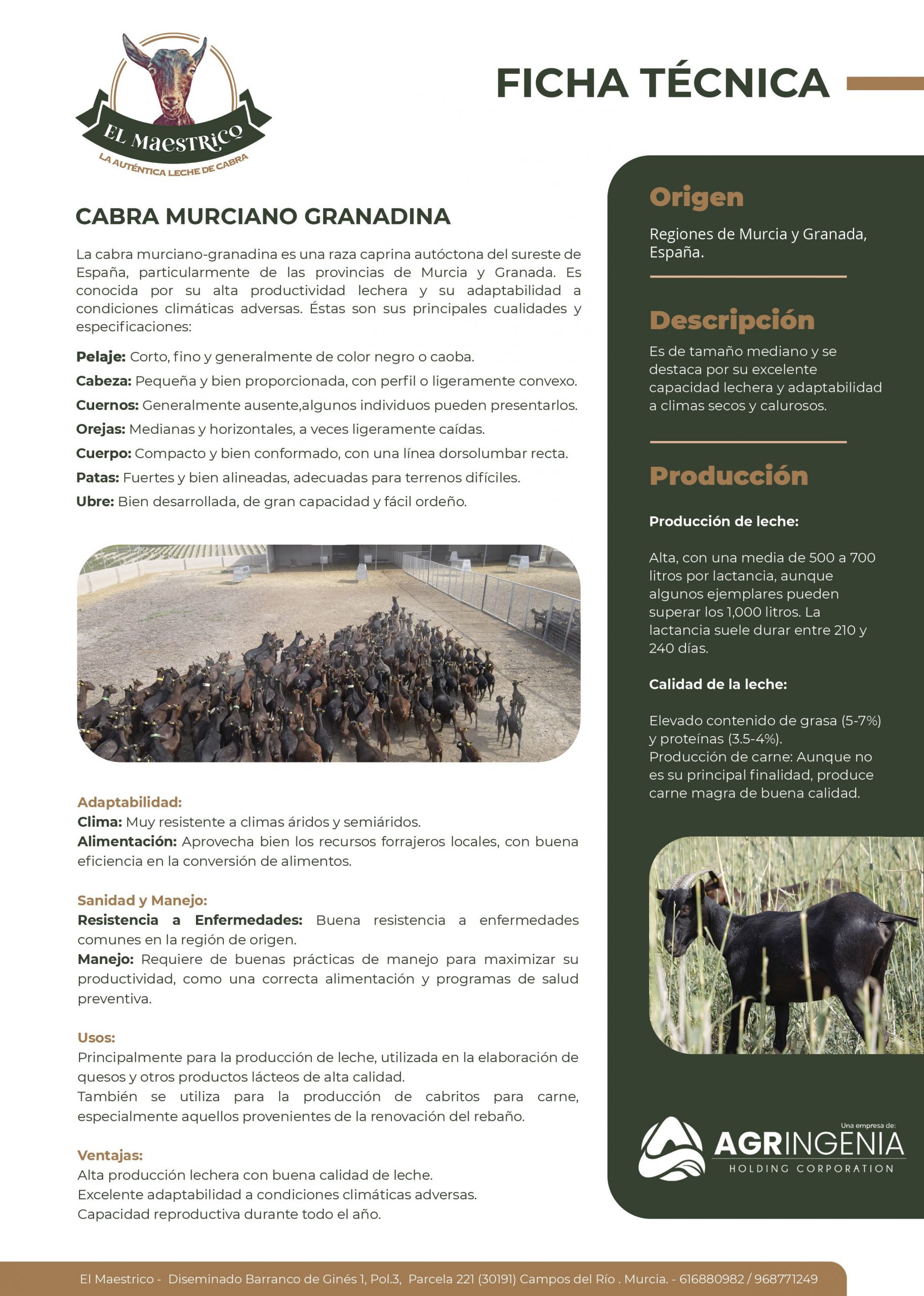 La genética de la cabra Murciano-Granadina es el resultado de siglos de selección y adaptación en la región sureste de España, lo que ha dado lugar a una raza caprina altamente productiva y adaptable, con características fenotípicas distintivas y una alta calidad de leche.